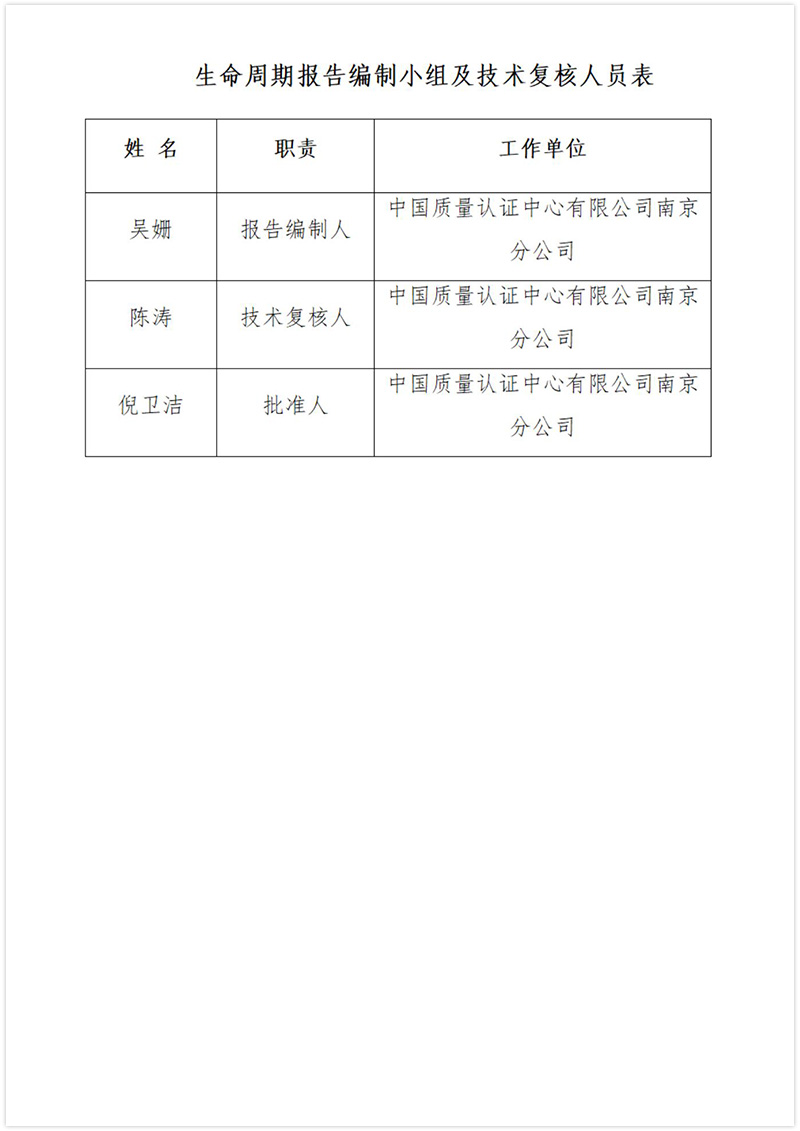 生命周期(碳足跡)報告